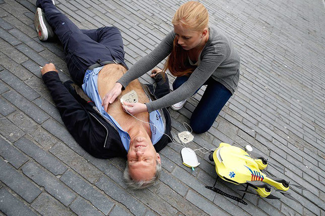 Example of an ambulance drone prototype in development at the Technical University of Delft, Netherlands
