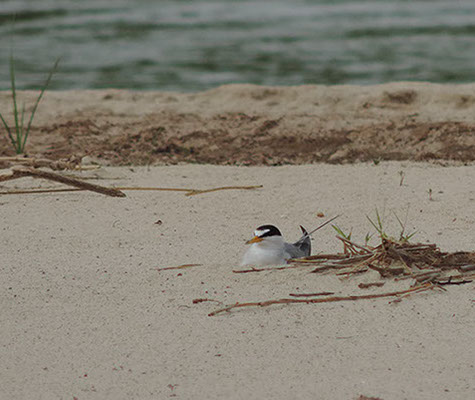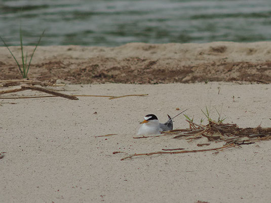 A Least Tern nesting in the sand of the Canadian River, flowing through GVF Living Laboratory.