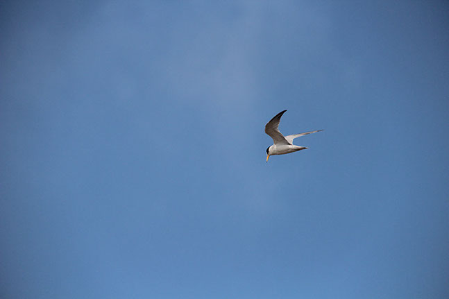 A Least Tern in flight over GVF Living Laboratory