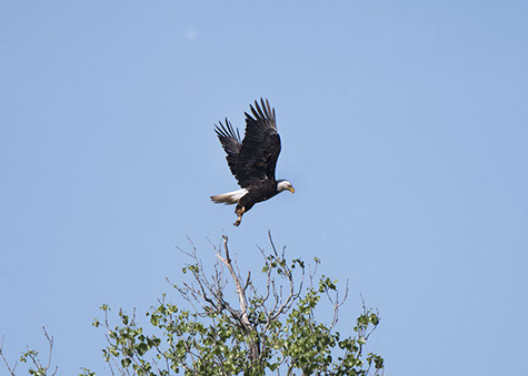 Green Valley Farms resident Bald Eagle launching into flight.