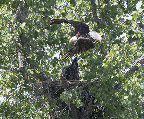Green Valley Farms resident Bald Eagle joining its fledgling the Spring 2018 nest.