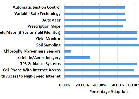 Summary of the adoption rates of numerous precision agriculture and ag data management tools currently available.