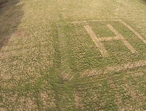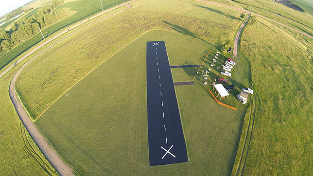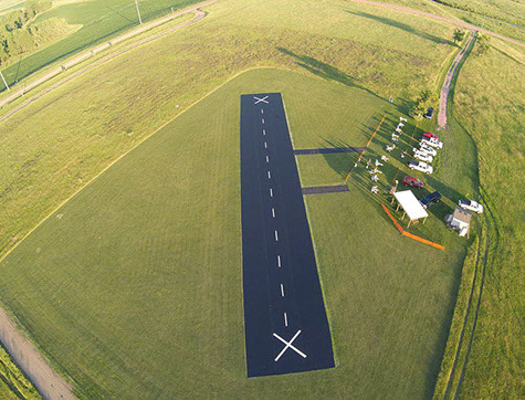 Aerial image of the Sod Busters airstrip in Goodhue, MN made of a woven geotextile.