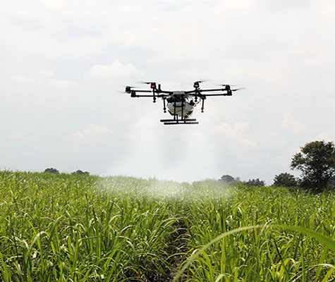Example of a drone performing uniform crop dusting.