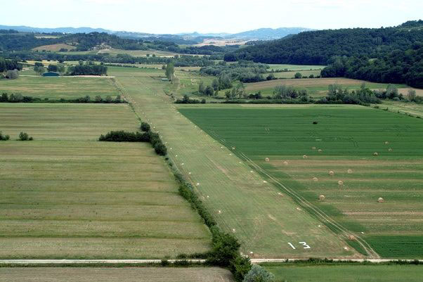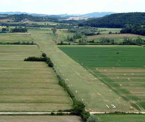 Aerial image of the Sod Busters airstrip in Goodhue, MN made of a woven geotextile.
